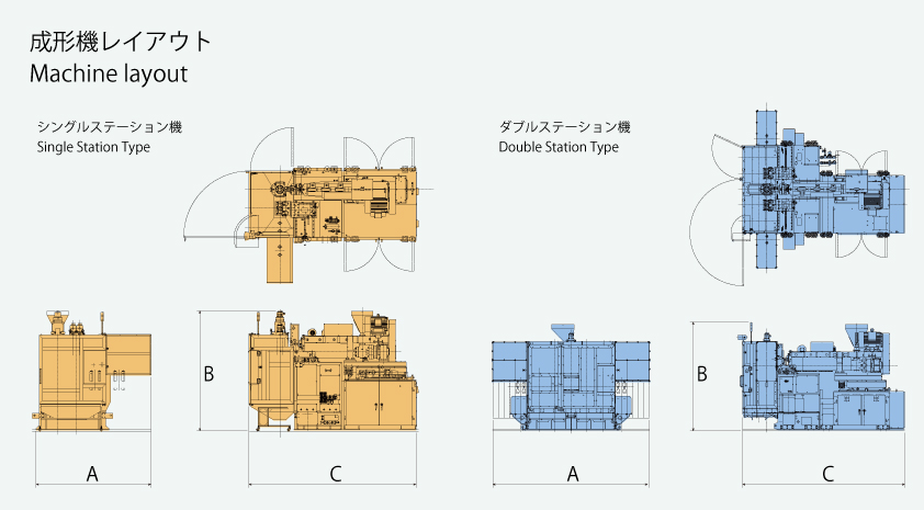* 2:除上述型號(hào)外,我們還提供各種尺寸和合模力的合模裝置。