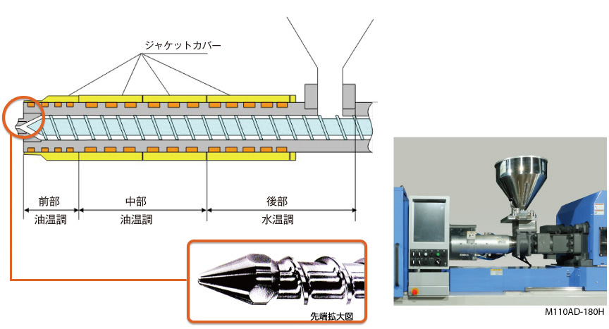 熱媒による溫調(diào)を採用した特殊デザインの可塑化裝置によって安定性が向上します。